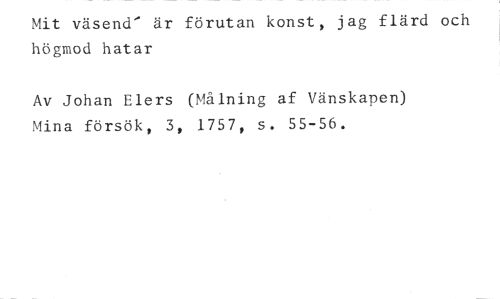Mit väsend' är förutan konst, jag flärd och högmod hatar //// Av Johan Elers (Målning af Vänskapen) Mina försök, 3, 1757, s. 55-56.