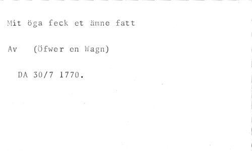 Mit öga feck et ämne fatt //// Av (Öfwer en Wagn) //// DA 30/7 1770.