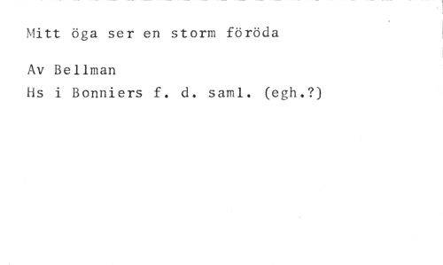 Mitt öga ser en storm föröda //// Av Bellman //// Fis i Bonniers f. d. saml. (egh.?)