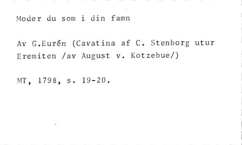 Moder du som i din famn //// Av G.Euren (Cavatina af C. Stenborg utur Eremiten /av August v. Kotzebue/) //// MT, 1798, s. 19-20.