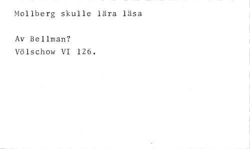 Mollberg skulle lära läsa //// Av Bellman? //// Völschow VI 126.