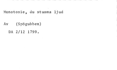 Monotonie, du stumma ljud //// Av (Spögubben) //// DA 2/12 1799.
