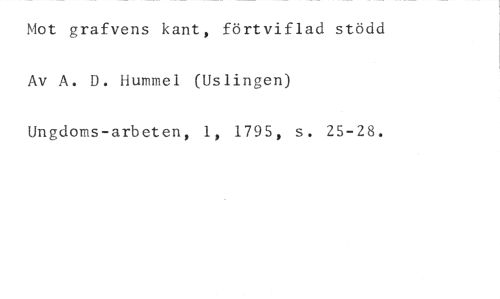 Mot grafvens kant, förtviflad stödd //// Av A. D. Hummel (Uslingen) //// Ungdoms-arbeten, 1, 1795, s. 25-28.