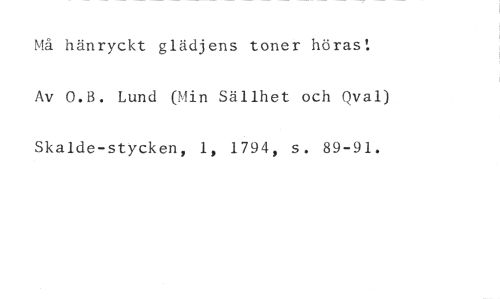 Må hänryckt glädjens toner hörast //// Av 0.8. Lund (Min Sällhet och Qval) //// Skalde-stycken, 1, 1794, s. 89-91.