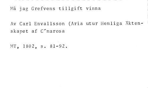 Må jag Grefvens tillgift vinna //// Av Carl Envallsson (Aria utur Hemliga Äktenskapet af C'marosa //// MT, 1802, s. 81-92.