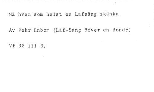 Må hvem som helst en Låfsång skänka //// Av Pehr Enbom (Läf-Säng öfver en Bonde) //// Vf 98 III 3.