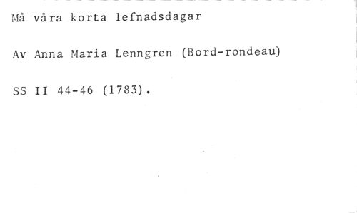 Må våra korta lefnadsdagar //// Av Anna Maria Lenngren (Bord-rondeau) //// SS II 44-46 (1783).
