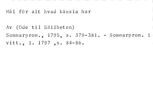 Mål för alt hvad känsla har //// Av (Ode til Sällheten) //// Sommarprom., 1795, s. 379-381. - Sommarprom. vitt., 1. 1797 ,s. 84-86.