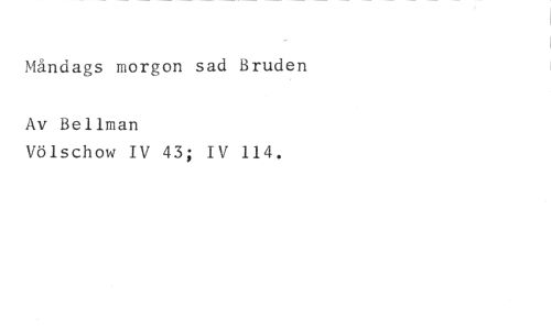 Måndags morgon sad Bruden //// Av Bellman //// Völschow IV 43; IV 114.