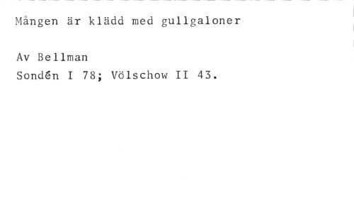 Mången är klädd med gullgaloner //// Av Bellman //// Sondlin I 78; Völschow II 43.