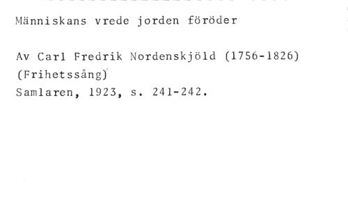 Människans vrede jorden föröder //// Av Carl Fredrik Nordenskjöld (1756-1826) (Frihetssång) //// Samlaren, 1923, s. 241-242.