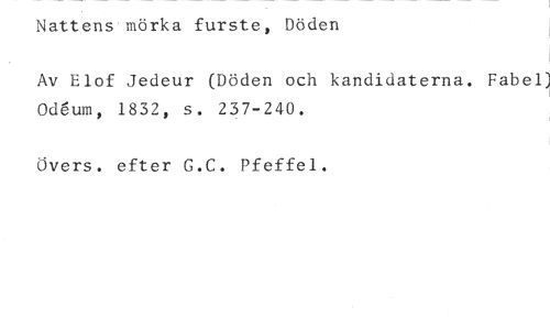 Nattens mörka furste, Döden //// Av Elof Jedeur (Döden och kandidaterna. Fabel ()deum, 1832, s. 237-240. //// övers. efter G.C. Pfeffel.