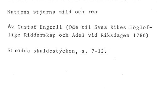 Nattens stjerna mild och ren //// Av Gustaf Engzell (Ode til Svea Rikes Högloflige Ridderskap och Adel vid Riksdagen 1786) //// Strödda skaldestycken, s. 7-12.
