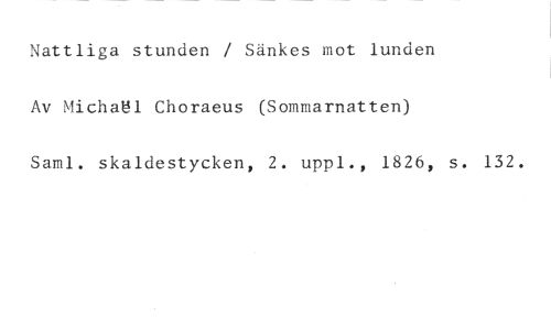 Nattliga stunden / Sänkes mot lunden Av Micha91 Choraeus (Sommarnatten) //// Saml. skaldestycken, 2. uppl., 1826, s. 132.