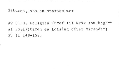 Naturen, som en sparsam mor //// Av J. H. Kellgren (Bref til Wxxx som begärt af Författaren en Lofsång öfver Nicander) SS II 148-152.
