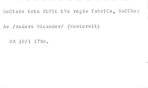 NeCtare tota fLVIt tVa regla fabriCa, BaCChe: Av /Anders Nicander/ (Westerwik) DA 10/1 1780.