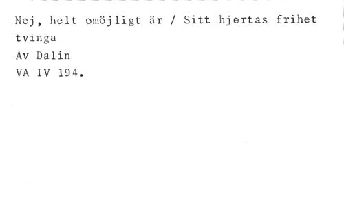 Nej, helt omöjligt är / Sitt hjertas frihet tvinga //// Av Dalin //// VA IV 194.