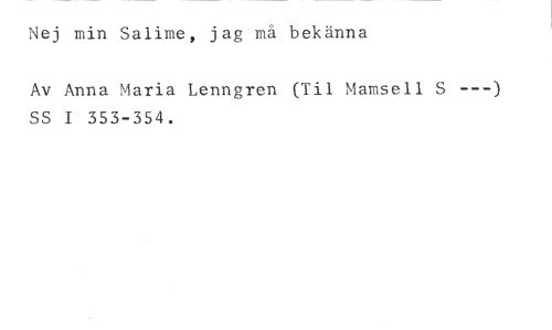 Nej min Salime, jag mä bekänna //// Av Anna Maria Lenngren (Til Mamsell S ---) SS I 353-354.