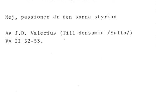 Nej, passionen är den sanna styrkan //// Av J.D. Valerius (Till densamma /Salla/) VA II 52-53.