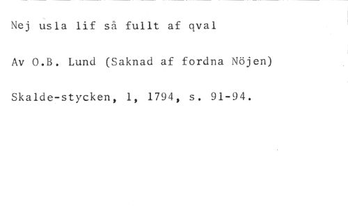 Nej usla lif så fullt af oval //// Av O.B. Lund (Saknad af fordna Nöjen) //// Skalde-stycken, 1, 1794, s. 91-94.
