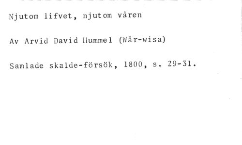 Njutom lifvet, njutorn våren //// Av Arvid David Hummel (Wär-visa) Samlade skalde-försök, 1800, s. 29-31.