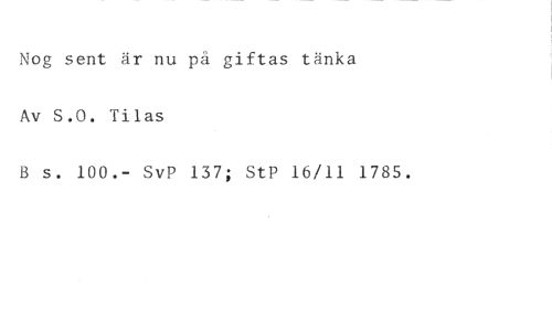Nog sent är nu pa giftas tänka //// Av S.O. Tilas //// B s. 100.- SvP 137; StP 16/11 1785.