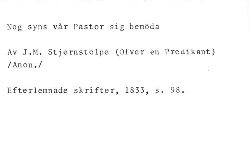 Nog syns vår Pastor sig bemöda //// Av J.M. Stjernstolpe (Öfver en Predikant) /Anon. //// /Efterlemnade skrifter, 1833, s. 98.