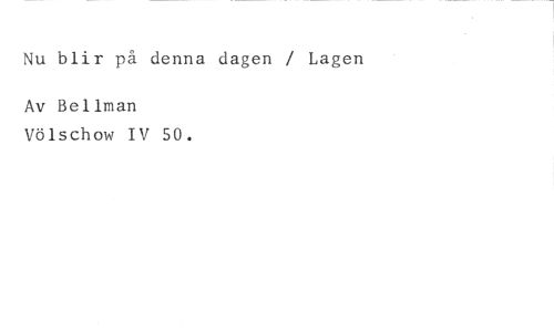 Nu blir på denna dagen / Lagen //// Av Bellman //// Völschow IV 50.