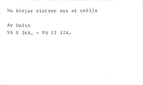 Nu börjar vintren oss at qvälja //// Av Dalin //// VA V 368. - PA II 128.