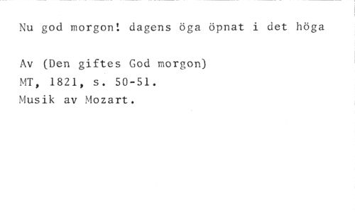 Nu god morgon! dagens öga öpnat i det höga //// Av (Den giftes God morgon) MT, 1821, s. 50-51. Musik av Mozart.