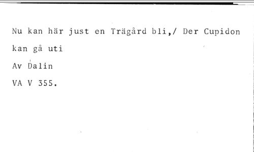 Nu kan här just en Trägård bli,/ Der Cupidon kan gå uti Av Dalin VA V 355.