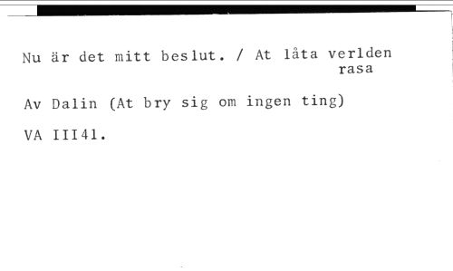 Nu är det mitt beslut. / At låta verlden //// rasa //// Av Dalin (At bry sig om ingen ting) VA 11141.