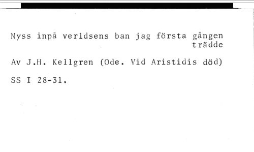 Nyss inpå verldsens ban jag första gången //// trädde //// Av J.H. Kellgren (Ode. Vid Aristidis död) SS I 28-31.