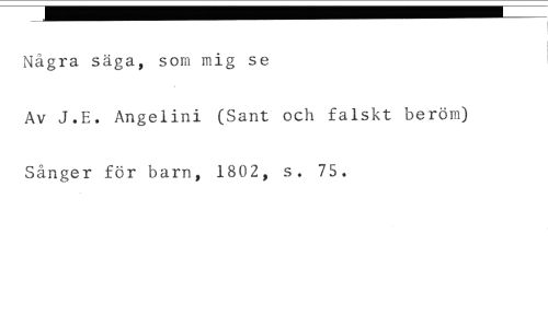 Några säga, som mig se //// Av J.E. Angelini (Sant och falskt beröm) Sånger för barn, 1802, s. 75.