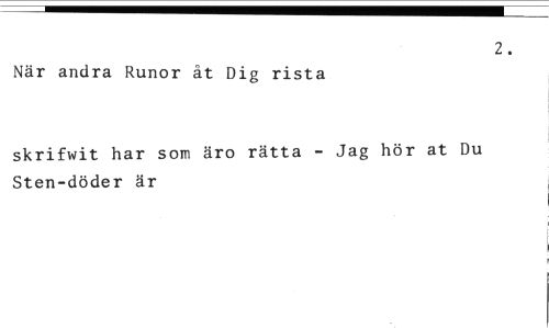 När andra Runor åt Dig rista //// skrifwit har som äro rätta - Jag hör at Du Sten-döder är //// 2.