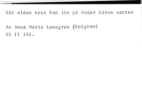 A=11- //// När elden nyss kom lös på Söder härom natten //// Av Anna Maria Lenngren ('pigram) SS II 141.