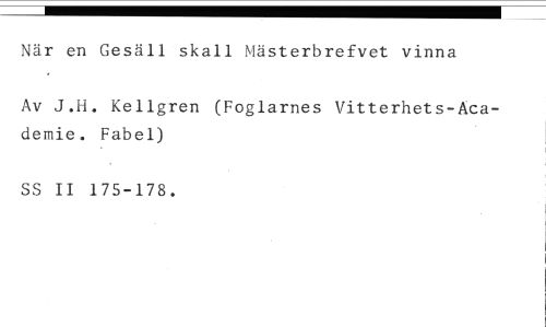 När en Gesäll skall Mästerbrefvet vinna //// Av J.H. Kellgren (Foglarnes Vitterhets-Academie. Fabel) //// SS II 175-178.
