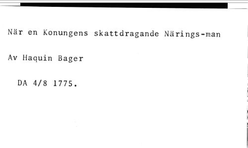 När en Konungens skattdragande Närings-man //// Av Haquin Bager //// DA 4/8 1775.