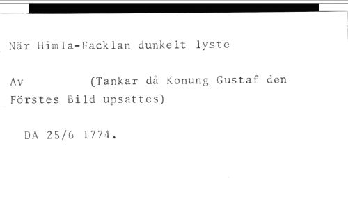När Himla-Facklan dunkelt lyste //// Av (Tankar då Konung Gustaf den //// Förstes Bild upsattes) //// DA 25/6 1774.