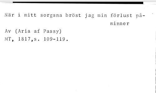 När i mitt sorgsna bröst jag min förlust på- //// minner //// Av (Aria af Passy) //// MT, 1817,s. 109-119.