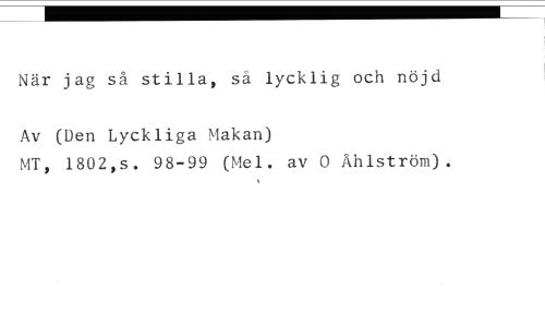 När jag så stilla, så lycklig och nöjd //// Av (Den Lyckliga Makan) //// MT, 1802,s. 98-99 (Mel. av 0 Åhlström).