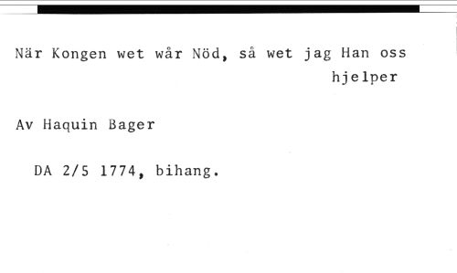 När Kongen wet wår Nöd, så wet jag Han oss //// hjelper //// Av Haquin Bager //// DA 2/5 1774, bihang.