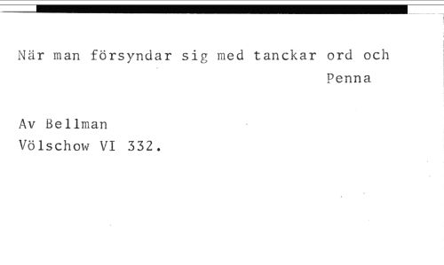 När man försyndar sig med tanckar ord och //// Penna //// Av Bellman //// Völschow VI 332.