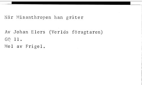 När Misanthropen han gråter //// Av Johan Elers (Verlds föragtaren) GQ 11. //// Mel av Frigel.