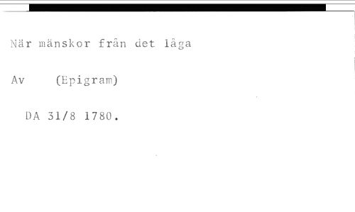 När mänskor från det låga //// Av (Epigram) //// DA 31/8 1780.