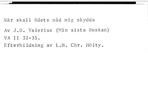 När skall ödets nåd mig skydda //// Av J.D. Valerius (Min sista önskan) VA II 32-35. //// Efterbildning av L.H. Chr. Hölty.