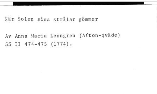 När Solen sina strålar gömmer //// Av Anna Maria Lenngren (Afton-qväde) SS II 474-475 (1774).