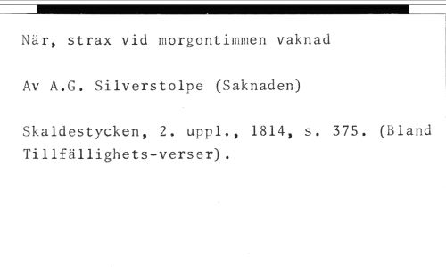 När, strax vid morgontimmen vaknad Av A.G. Silverstolpe (Saknaden) //// Skaldestycken, 2. uppl., 1814, s. 375. (Bland Tillfällighets-verser).