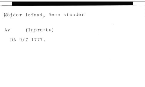 höjder lefnad, ömma stunder //// Av (Inpromtu) //// DA 9/7 1777.