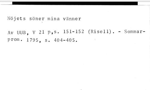 Nöjets söner mina vänner //// Av UUB, V 21 p,s. 151-152 (Risen). - Sommarprom. 1795, s. 404-405.